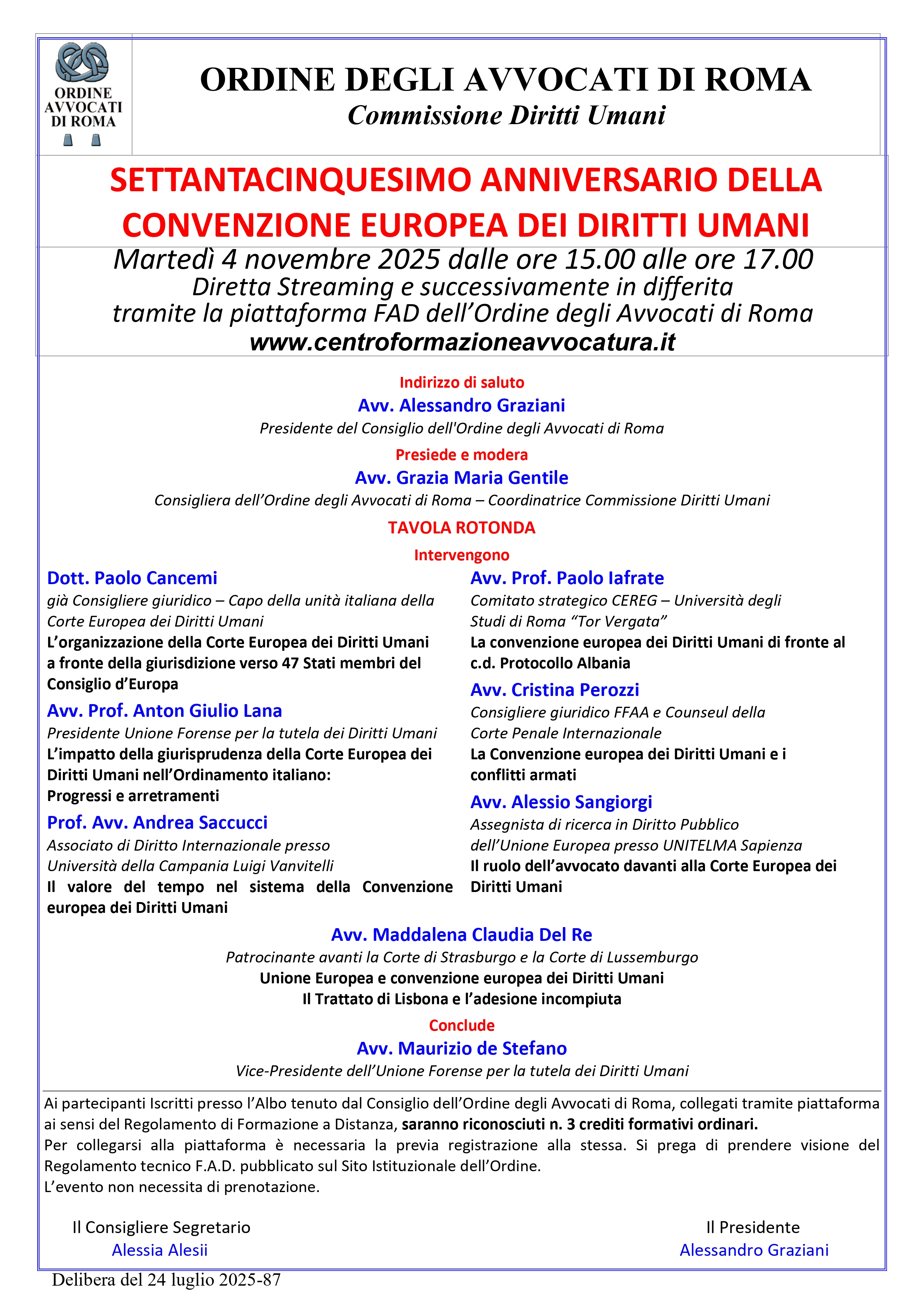 La Consulta per la Giustizia Europea dei Diritti dell'Uomo si è costituita il 13 giugno 1986, con lo scopo di far conoscere alle Associazioni culturali e sindacali degli Avvocati e dei Magistrati gli strumenti di tutela dei Diritti dell'Uomo, garantiti da norme internazionali:
